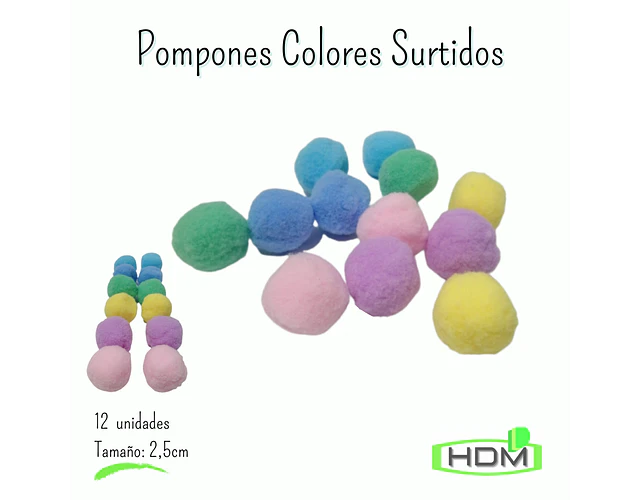 Pompones 2,5cm Pack 20 unidades. Los pompones están hechos de polipropileno. Perfecto para manualidades ,Estos coloridos pompones pueden servir como varias decoraciones para hacer muñecas, proyectos para niños y manualidades. Adecuados para guirnaldas, flecos, fiestas, regalos hechos a mano, proyectos escolares para niños, proyectos de campamento, etc. 12 unidades